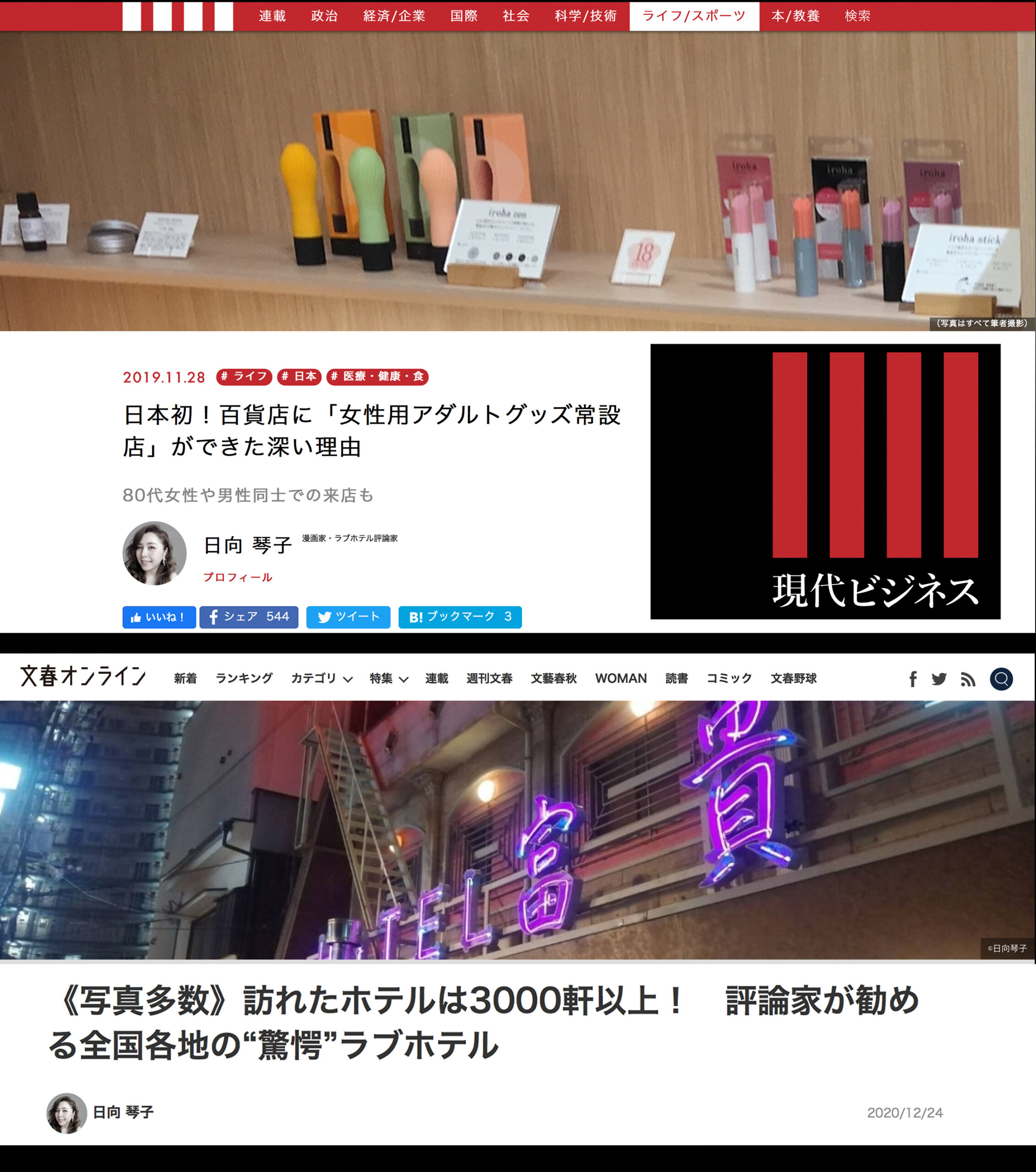 『ケンコバのBAKO2TV』レギュラー『日向琴子のラブコンシェルジュ』サンテレビ、スカパー!などで放送中♬ラブホテル評論家としてTV、雑誌等で活躍するほか、コンサルタントやプロデュースも手がけています